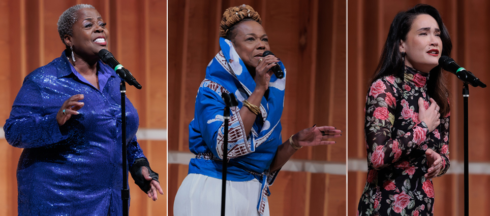 Lillias White recalls her Broadway role as Erzulie, the Goddess of Love for “Come Down From the Tree” (Once on This Island). Warm and earthy, the artist creates a soft (emotional) place to land. Also from Once, Kecia Lewis’s “Mama Will Provide” combines accent, growl, emphasis, and smooth moooves to create a rhythmic, fringed sarong of music. We chair dance.