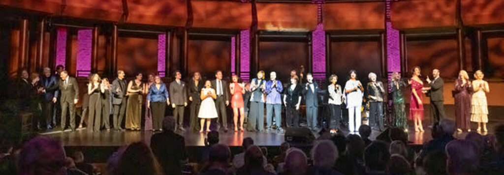 Hosts Jeff Harnar and Andrea Marcovicci, in their 11th year of collaboration, welcome us with a playful rendition of “Doodle Song”, followed by the composer’s go-to party number, “Some Kind of Music.”: “All I want is some kind of music in my ear…” Nicolas Perez and band contribute jaunty back-up vocals.