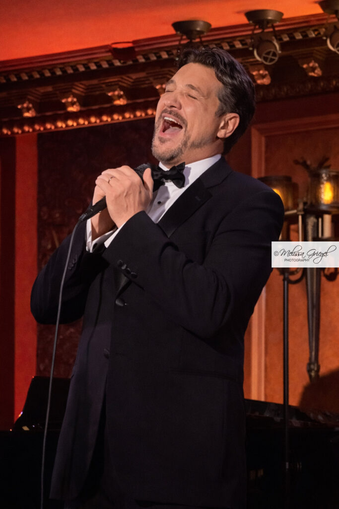 Szot waltzed into the 54 Below dining room, dancing his way from the bar to the stage with “Let’s Do It, Let’s Fall in Love” by Cole Porter. The Brazilian operatic baritone is so charismatic that the combination of his warmth, looks, voice, stories, charm, and a packed set-list, all combined for a delightful evening that garnered several standing ovations. With selections from Chicago, South Pacific, Hadestown, Les Misérables, & Juliet, Jekyll & Hyde, and Man of La Mancha, it seemed that every time he launched into a new song there were delighted gasps from the audience.
