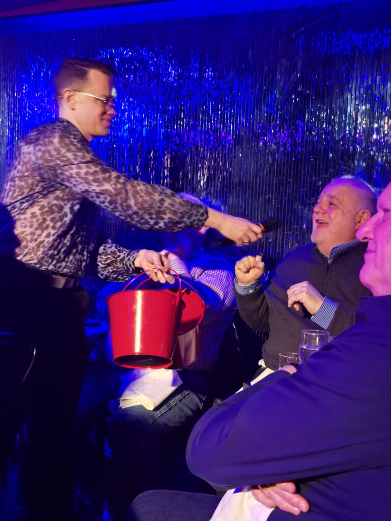 McArdle’s Broadway on Demand has a unique premise: club co-owner Michael D’Angora circulates through the audience with two red buckets, one for stories and one for songs. Lucky patrons draw a selection, and McArdle either tells the story or sings the song – both to great effect. It’s also fine to ask a question, or even request something outside the buckets: on this particular evening, she was never at a loss.