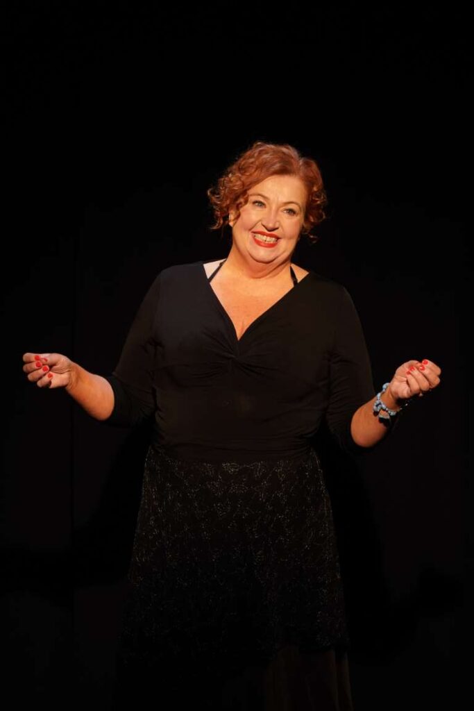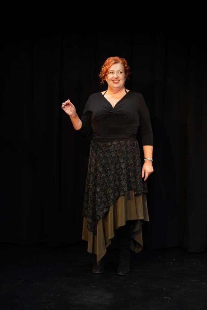 In “Making a Show of Myself” Mary Kate O’Flanagan walks onstage and jumps right into a story of dating disasters, starting with her ex, who’s an expert in insensitive behavior. She regales us with her first try at internet dating back when she was in her 30s: there’s the 18-year-old who swears he’s mature enough but says he just wants loads of sex and then the man she falls for… only to have to investigate her own values when she learns he’s wheelchair bound… only to fall for him and have him ghost her after he learns who her best friend is… only to find out from her best friend that the man was married.