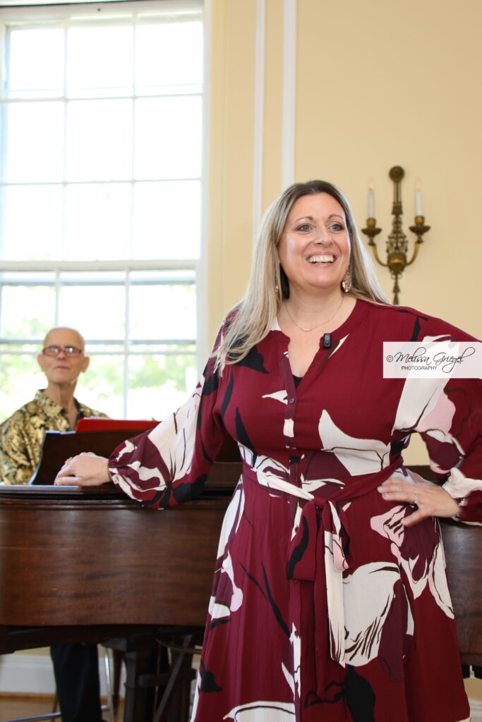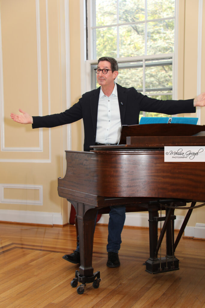 First up was Jim Horan, who regularly serves as music director and accompanist at Music at the Mansion™ events. Horan talked about his love of musical theater going way back to when he and his twin brother would listen to cast albums such as Camelot as children. He began with “One of Those Songs” made famous by Jimmy Durante, and then launched into a medley of Broadway tunes from his favorite vinyls. The audience had a lot of fun when Horan encouraged everyone to join in singing his piano bar medley of “Downtown”, “Dancing Queen”, and “Sweet Caroline.” The personable Horan regaled the audience with stories and finished the set with his original composition “I Can Sing”. Horan has accompanied and sung at prestigious music halls and cabaret venues such as Carnegie Hall, Lincoln Center Rose Theater, Barclay Center, Town Hall, The Duplex, Don’t Tell Mama, The Metropolitan Room, Green Room 42, and most notably, served as the Musical Director/Co-Producer of the financially and artistically successful Second Act Series at 54 Below.