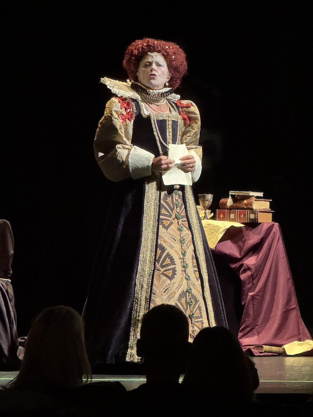 Elizabeth I – In Her Own Words is a solo performance of the “Virgin Queen” remembering significant events of her long reign (nearly 40 years!) as Queen of England as she prepares for bed. Brilliantly played by Tammy Meneghini, Elizabeth defends her reputation and decisions, over the course of a 90-minute soliloquy, affirming that Her Majesty was her own woman.
