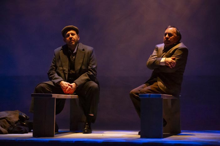 Scenic Design (Brian Dudkiewicz) utilizes painterly sea photos of clouds by Japanese photographer Hiroshi Sugimoto universal to all three pieces. Minimal wooden furniture serves well. Julia Squier’s Costumes are appropriate and well worn.
