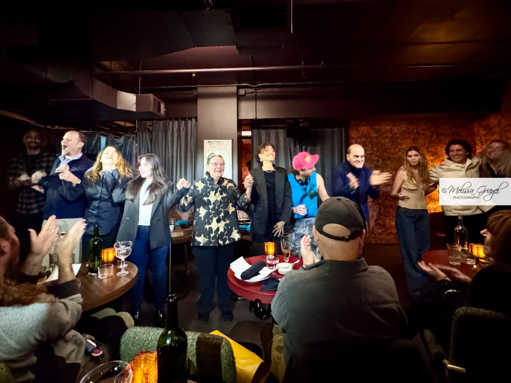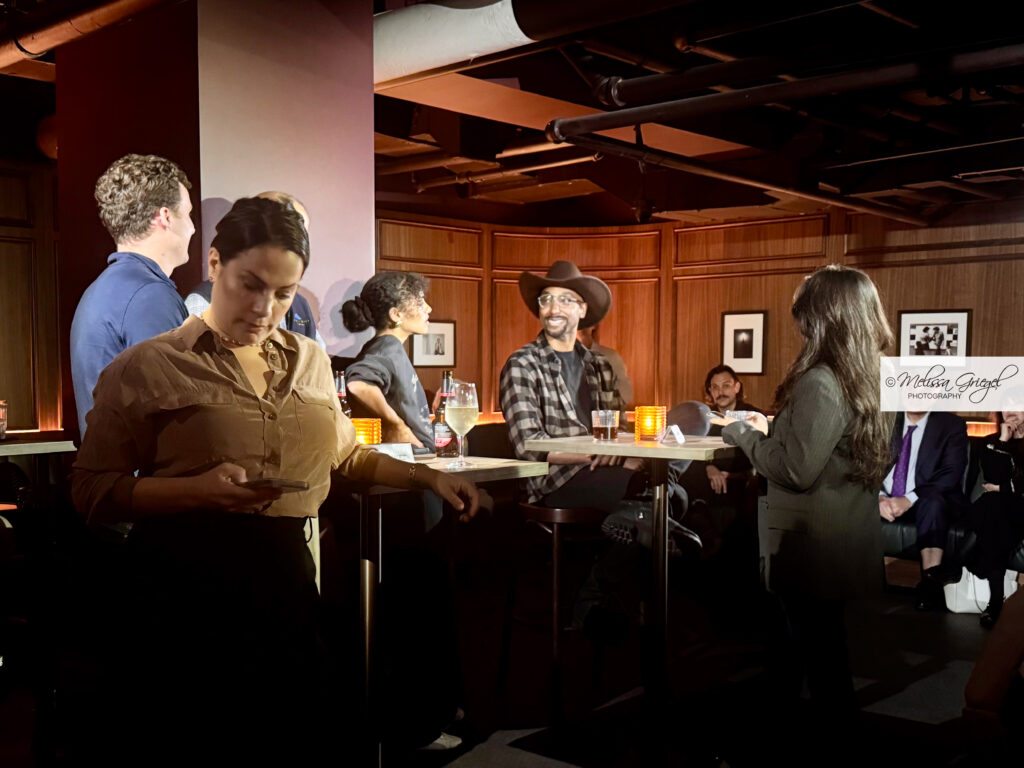 d’Amato: All of the plays were written originally for this specific evening and for Barlume Downstairs. All the food, special cocktails, and other details about the restaurant in the show are from Barlume’s real menu. We actually cast the ensemble first. Then all the playwrights decided on their casts and wrote plays for the actors. They all wrote them very fast. I was impressed. One of our playwrights, and co-founder, Eduardo Machado, wrote his play “Fine Dining” about a theme that Barlume has around a bird that travels to different locations and enjoys mediterranean life. The protagonist of his play is called Paloma. “Peekos at Barlume,” featuring Peekos Oysters from Barlume’s menu, was written by Sandi Farkas, a playwright and former student of Eduardo’s. Suite 524 co-founder Michael Sharp wrote “Cowboy.” Suite 524 co-founder, Michael Domitrovich wrote “See the Forrest”, as well as all the host’s monologues. Michael Domitrovich also Directed all four plays.