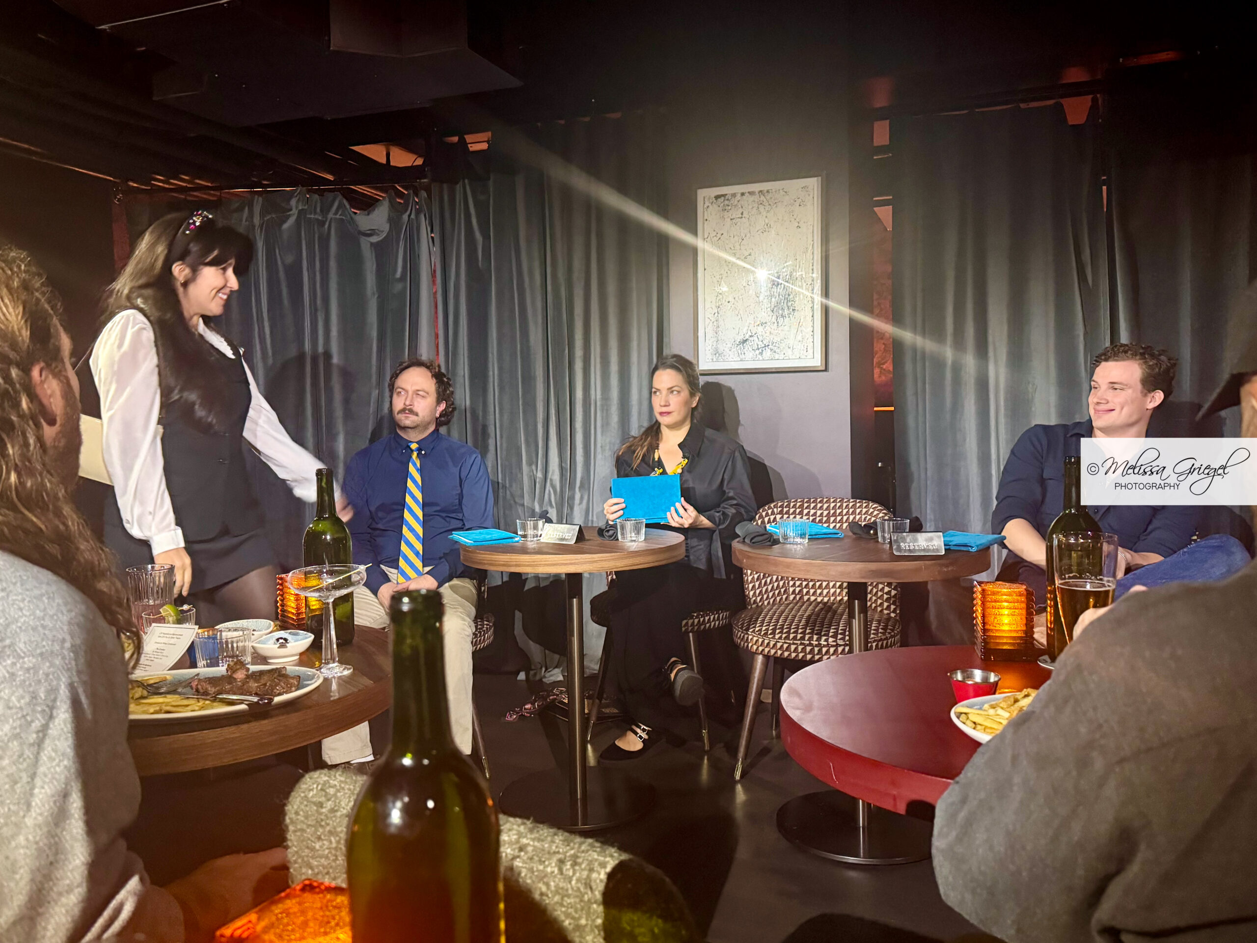d’Amato: The show you came to was our first of this run, so unfortunately we didn’t have previews. I think previews would be a good idea for this show, given that immersive element, but with a limited run, we are just diving in. As I told you when we met, Pop Up Dinner Theater feels like pure theater. It reminds me of those traveling bands of players from medieval times doing street theater. They pulled up wherever they could and had to get your attention using what they could. Since this takes place in a real restaurant it feels similar. People are distracted by food, drinks, waiters, and each other. We have to grab their attention somehow. For the actors, it is a lot to have the audience right there on top of you all of a sudden. It’s especially impressive given each play only had three, three-hour rehearsals. But this cast is so incredibly talented, that no one really worried about that. Everyone’s a pro and just jumped in. It’s part of the imagination. The idea is that we are all at this restaurant together. There’s a voyeuristic quality because these plays are taking place next you, as if you’re overhearing the table next to you. So I think for the actors, the audience becomes part of the cast. For the restaurant it’s not as complicated service-wise because it becomes like catering. Since menu selections are made in advance and there doesn’t need to be too much interaction with guests, it becomes a more technical event for them.