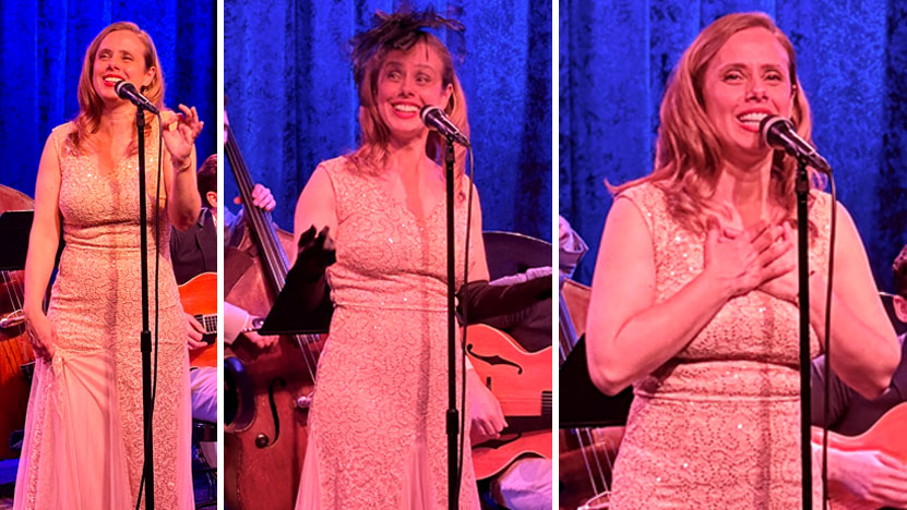 “Cheek to Cheek” (Irving Berlin), first in French, is discretely sophisticated. Poised, Sergent turns slightly taking us all in. “Heaven…” she nods and smiles…”I can hardly speak…” hands cross across her breast. The song emerges head-bobbing, light swing. Her voice is silken.