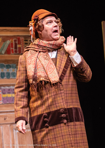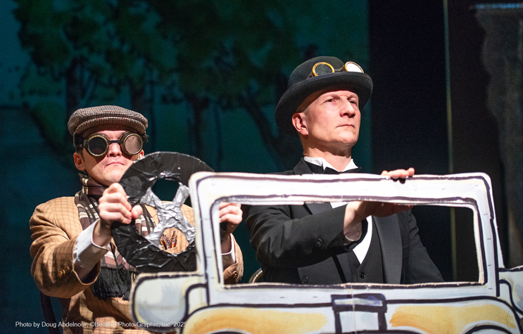 Will DeVary’s Bertie is aptly, perpetually bewildered and perturbed. Freeze frames work to good advantage. Skibbling from place to place and jumping up and down when excited emerge organic. DeVary listens well, expertly leaving a Bertie-like beat for absorption before reaction. He connects with audience.
