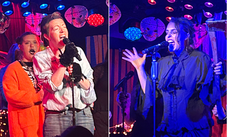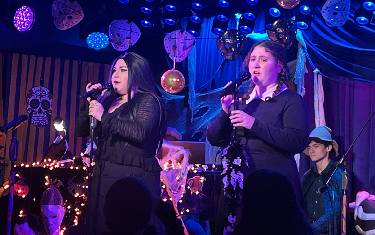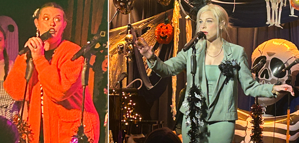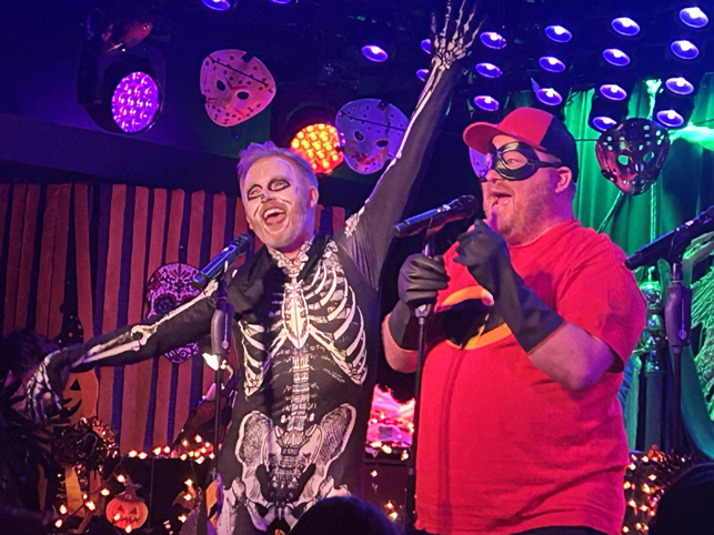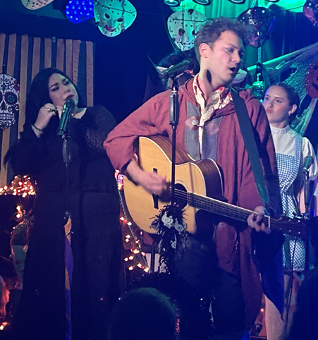 A rousing “Paint It Black” (Mick Jagger/Keith Richards)/“Bad Moon Rising” (John Fogerty), replete with perhaps the first use of kazoos in a rock song, opens festivities as costumed performers gambol onto the stage. Bill Coyne then plays the corrupting wizard from Don Black/Charles Strouse’s The Worst Witch. “ …This hairy, scary, creepy, crawly Halloween…” he sings with sinister baritone innuendo. “Anything Can Happen on Halloween.”