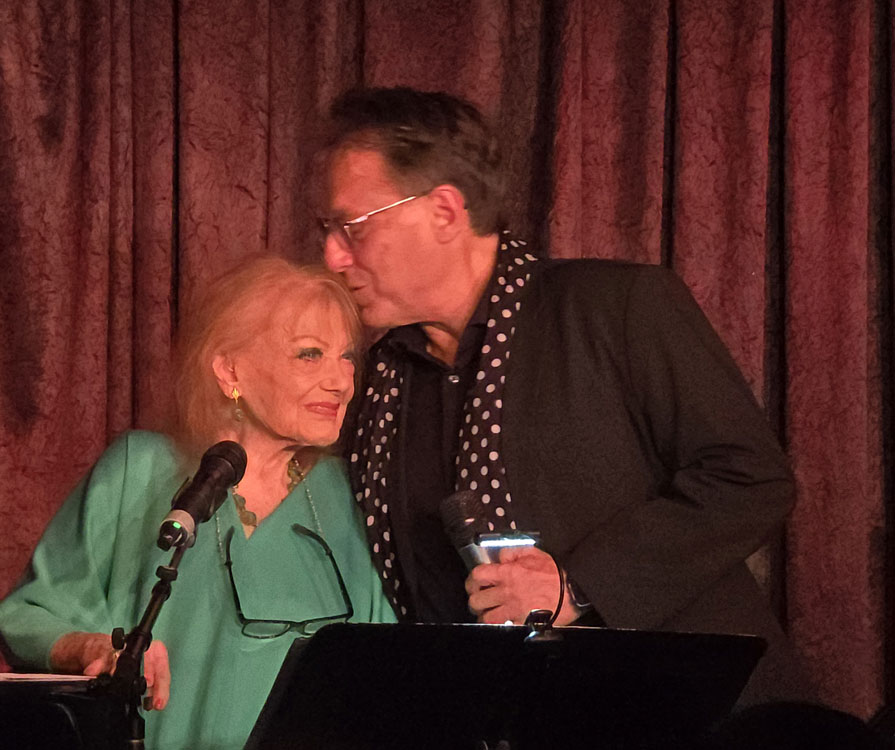 There would be several more duets. The obscure “On the Streets of Perry,” a charming duet with the “Prince of Cabaret,” Steve Ross, was soon followed by a duet with by Charnay’s granddaughter, Rafaelle Fiore-Mark and her boyfriend Walker Sikkens on “You Belong to Me.” Rafaelle, a young beauty with a long mane of curly hair, is making a name for herself as an actress and cabaret singer. Sikkens is a tenor with an operatic voice. Sikkens and Charnay later performed a counterpoint duet on “(I Wonder Why) You’re Just In Love” (Irving Berlin). Later in the show, Tony Mark and Charnay did a very sweet mother-son duet on “Life Is Just a Bowl of Cherries.” (Who knew he could sing, too?)