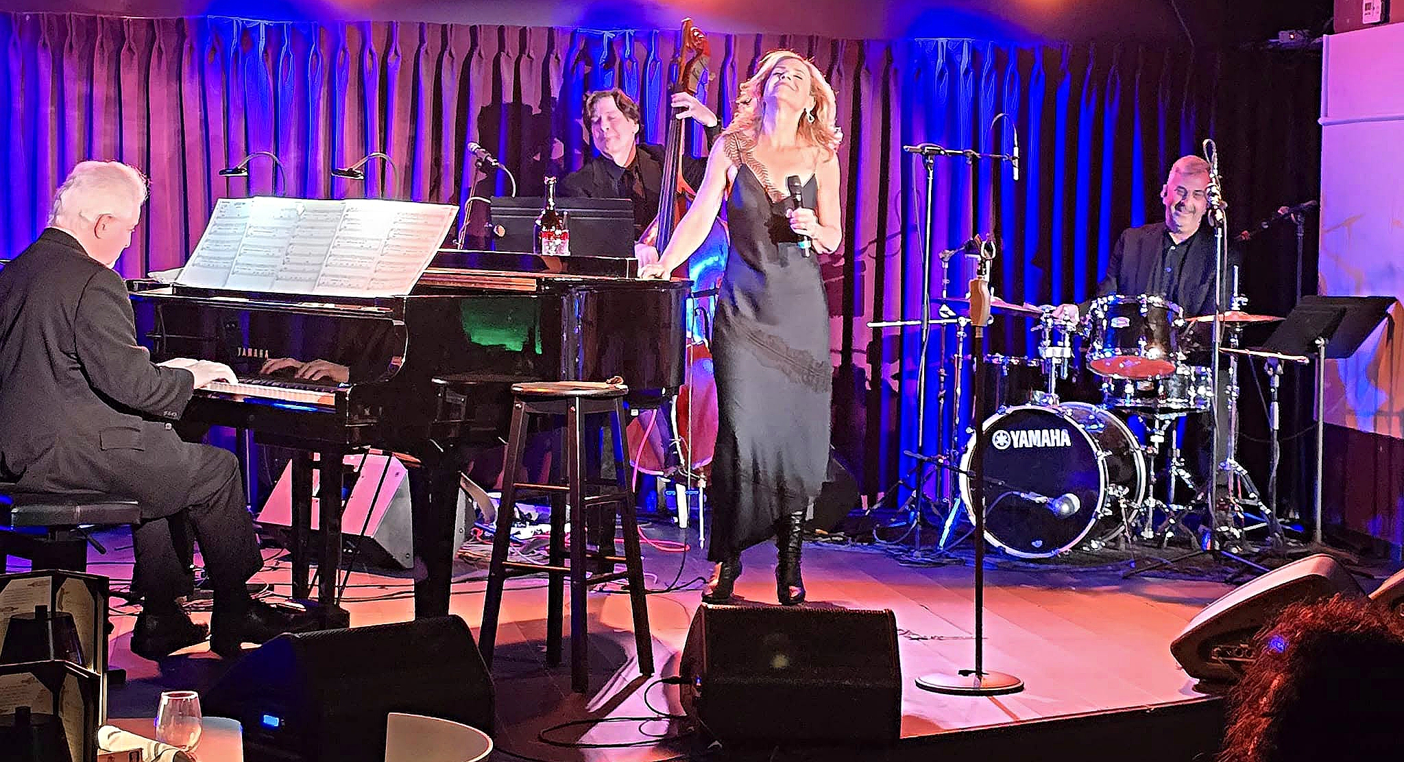 Curry was accompanied by her musical director and pianist, Gregory Toroian, bassist Skip Ward, and drummer David Silliman. This trio of accomplished jazz cats have backed many artists in the cabaret community, almost always as a unit. As such, they have become something of a “Wrecking Crew” of the New York cabaret scene. They are the go-to choice for this show’s director, Lina Koutrakis.