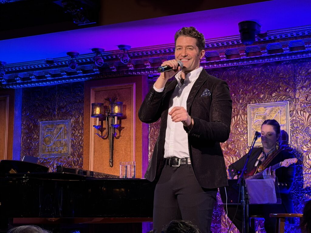 Matthew Morrison (Hairspray, The Light in the Piazza, South Pacific), made his debut on Broadway in Footloose and then went on to star in several Broadway shows, but he is best-known for his long-running role as Will Schuester (“Mr. Schu”) on the TV series Glee. There were clearly many “Gleeks” in the audience, evidenced by a few shoutouts of “Mr Schuuu!” from the audience, and one fan giving him a shirt adorned with photos of him from his time in Glee. His “teaching credentials” paid off as he schooled us in what makes up an engaging and perfectly orchestrated cabaret show.