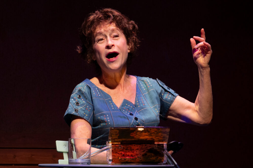 Ther show’s plot has an A story featuring Phil Arkin (Eric Michael Gillett) a wealthy businessman visiting his daughter Barbara (Alaina Mills) and new son-in-law David (Ari Axelrod), a proud Israeli farmer. Among a group of Jewish widows on tour is Ruth Stein (Kelly Lester), still mourning the loss of her husband after four years. As often happens in musicals, Phil and Ruth fall in love before they ever even kiss and the secret withheld (isn’t there always a secret in these musicals?) is that Phil has a wife he barely sees who likes spending his money and refuses to divorce him. That’s really all the dramatic tension there is, save for some conflict with his daughter over his affair with Ruth. The B story involving Clara Weiss (Neva Small) and her prolonged widowhood takes up a lot of time and is truly inconsequential, with lots of jokes that were hoary 65 years ago, for sure.