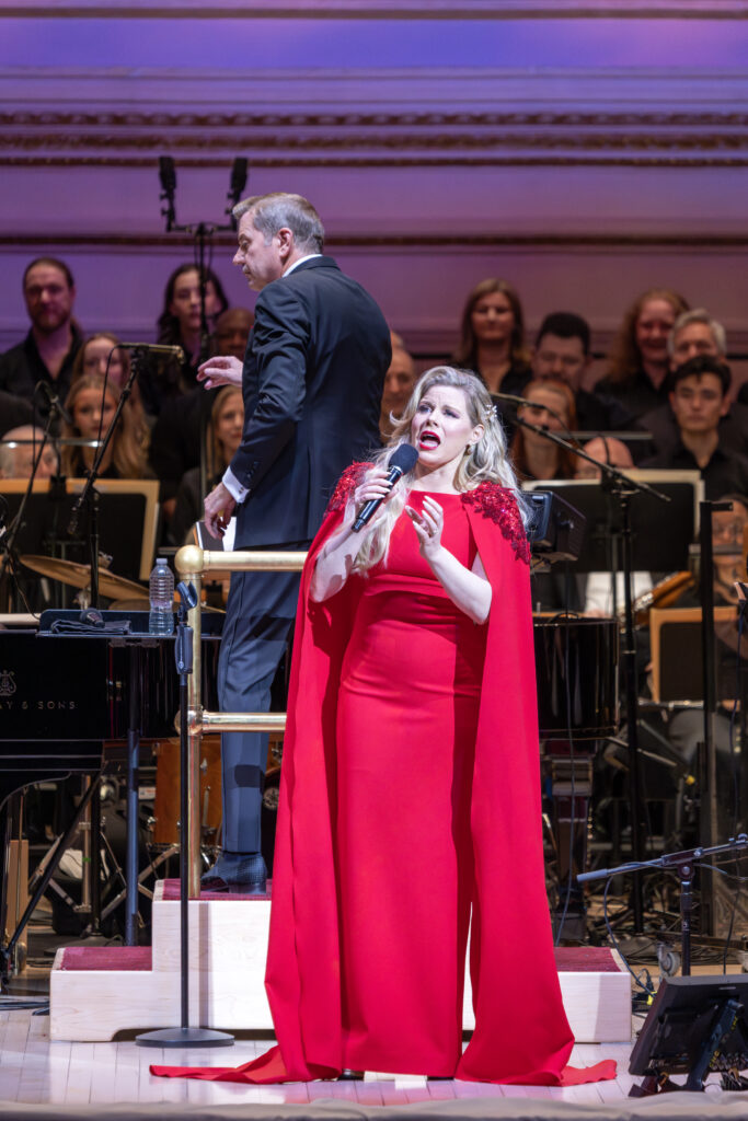 Reineke then introduced Broadway and cabaret star Megan Hilty. Dressed in a striking red gown with a full-length cape and sparkling shoulder accents, her long blonde hair perfectly framed as she filled the hall with a powerful, confident voice. She delivered a festive medley of “It’s the Most Wonderful Time of the Year” (Edward Pola/George Wyle) with “The Christmas Waltz” (Jule Styne/Sammy Cahn).