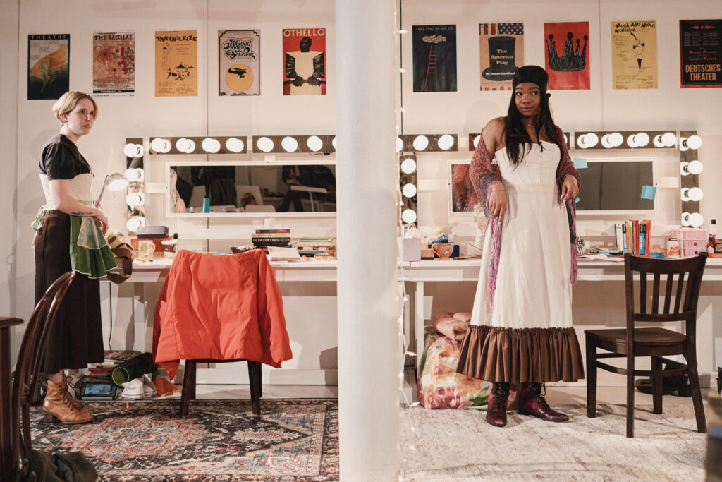 The entirety of the action takes place from Fall to Spring 2015-16 in the communal dressing room at a New York City acting conservatory (Julliard, though never called out by name). We see five actresses in their senior year first working on Shakespeare’s The Winter’s Tale, then an acting showcase for prospective agents, and finally Chekhov’s The Seagull. Even though the characters might seem like stock types, they’re not conceived or performed that way. Briefly, they are Cate (Francesca Carpanini), persistently upbeat but also relentlessly aggressive; Lillith (Nina Grollman), a fresh-faced Minnesotan who might not have the gut instincts it takes to succeed in the outside world; Kyla (Jasminn Johnson), a self-doubter but a survivor; Erika (Aigner Mizzelle), an outsized personality whose talent and drive are going to take her far; and Zoe (Katherine Reis), the ingenue’s ingenue whose stubborn nature might prove her downfall. Throughout the twists and turns in their stories, we are flies on the wall to their comradery and competitiveness—all of it all too real.