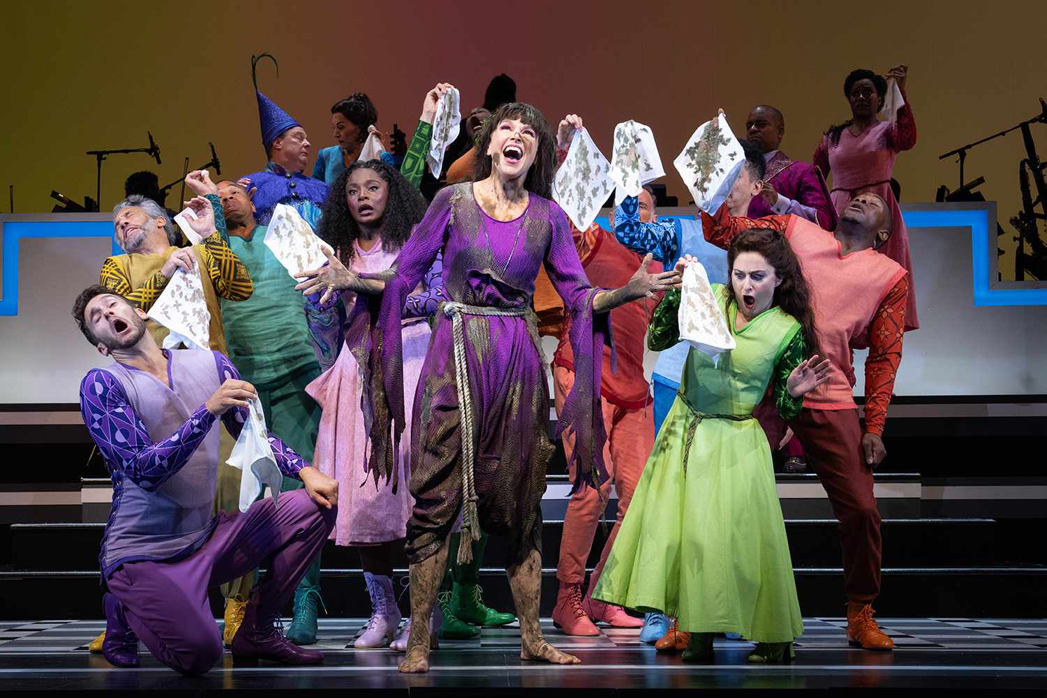 Because of this being an Encores! transfer there’s not a whole hell of a lot to David Zinn’s scenery, which is odd since he’s one of the most clever designers around. The orchestra onstage takes up a lot of the real estate, leaving less room for his usual outsized ideas. The costumes by Andrea Hood are playful and colorful and I liked Justin Townsend’s lighting a great deal. It added mood whenever possible and kept things cheery, perfect for a fairy tale.