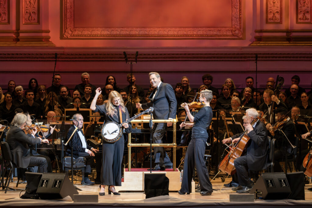 The second half returned to Americana with banjo legend Earl Scruggs’ “Foggy Mountain Breakdown,” performed by Hilary Hawke on banjo and Pops’ violinist Sara Caswell on “fiddle.” Woody Guthrie’s “This Land is Your Land,” featuring all three singers, included all seven original verses. Beginning simply, with Payton and guitar alone, it grew into one of the evening’s most affecting moments.