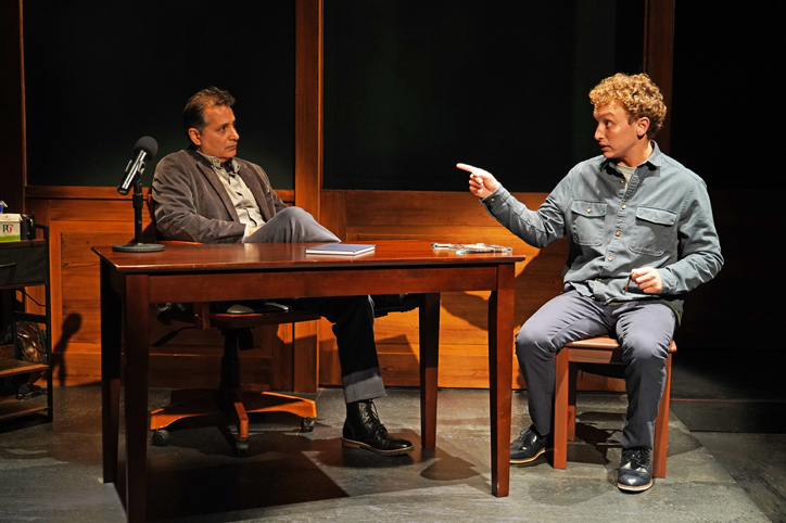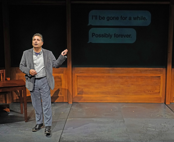Actor Firdous Bamji opens the evening with a loose monologue including reference to cell phones and theater exits that might pass for a tv warm-up. He then becomes Professor Lukesh addressing his psychology class: