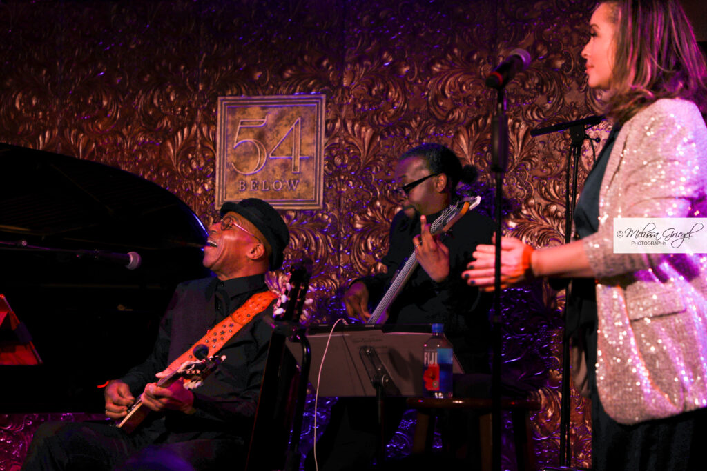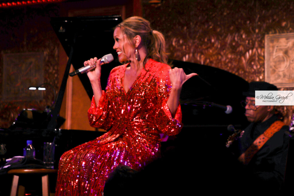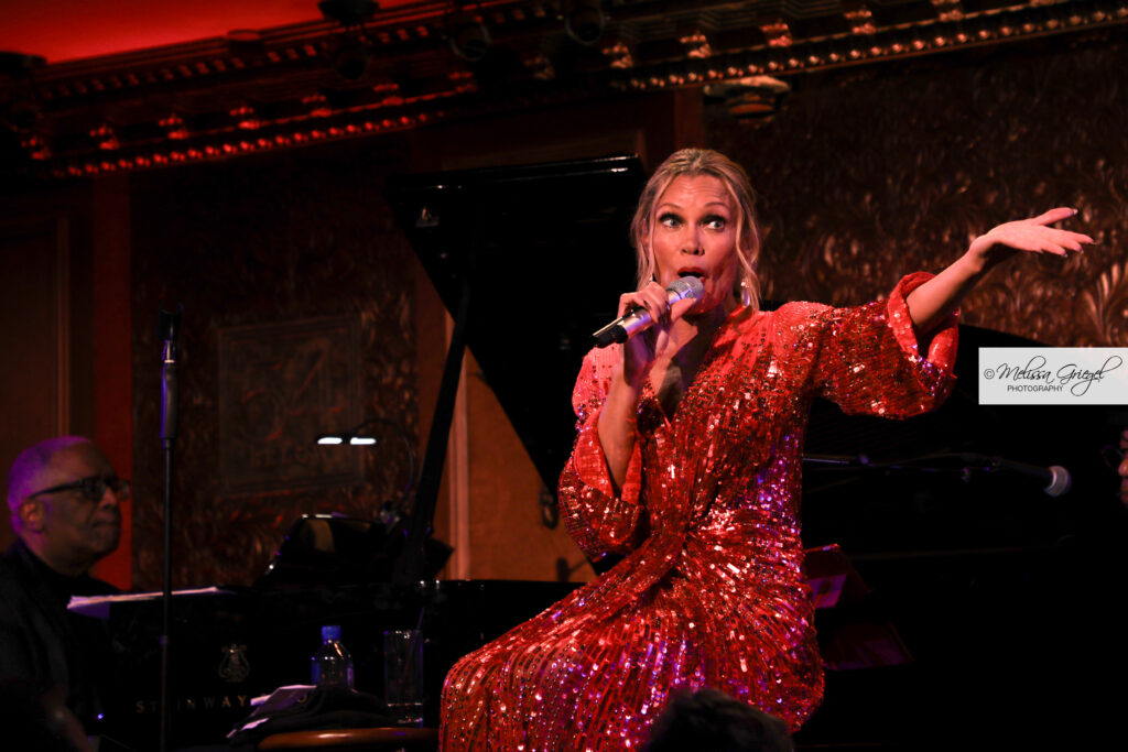 The 54 Below patrons absolutely enjoyed every note of the”Colors of the Wind”. This was a good introduction for her to pivot from her own songs to some Broadway tunes. “Children Will Listen” was a natural choice, as she starred in Sondheim’s Into the Woods as the witch. Other Sondheim greats that made the cut were “Losing My Mind” (Follies) and “Not a Day Goes By (Merrily We Roll Along). The latter was a duet with her back-up singer for the evening, Shelley Thomas-Harts (Brooklyn, the Musical, Zanna, Don’t).