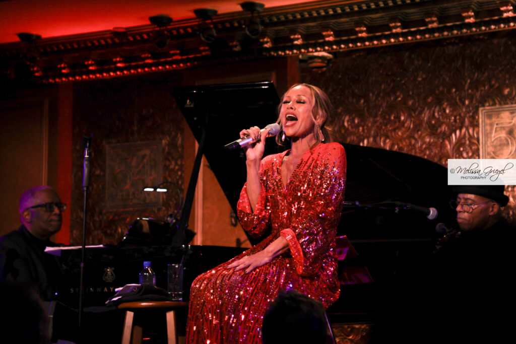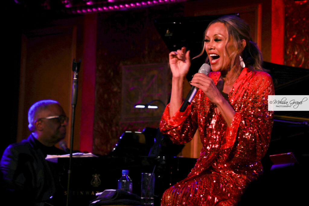 At the Tuesday, February 17th show, Vanessa looked stunning in a gorgeous red dress, as she sang about love and took a musical stroll down memory lane. Vanessa, who is currently headlining the West End musical adaptation of film The Devil Wears Prada as the iconic character Miranda Priestly, took a short hiatus to come sing at 54 Below. She started off the show with a funny anecdote about how some of the young cast members in London said, “Oh, so you are doing your cabaret act? What are you singing?” Her joking response was, “Google my name bitch; look up my hits and then you’ll know what I am singing!” She then launched into one her hits, “The Comfort Zone” off of her second album of the same name.