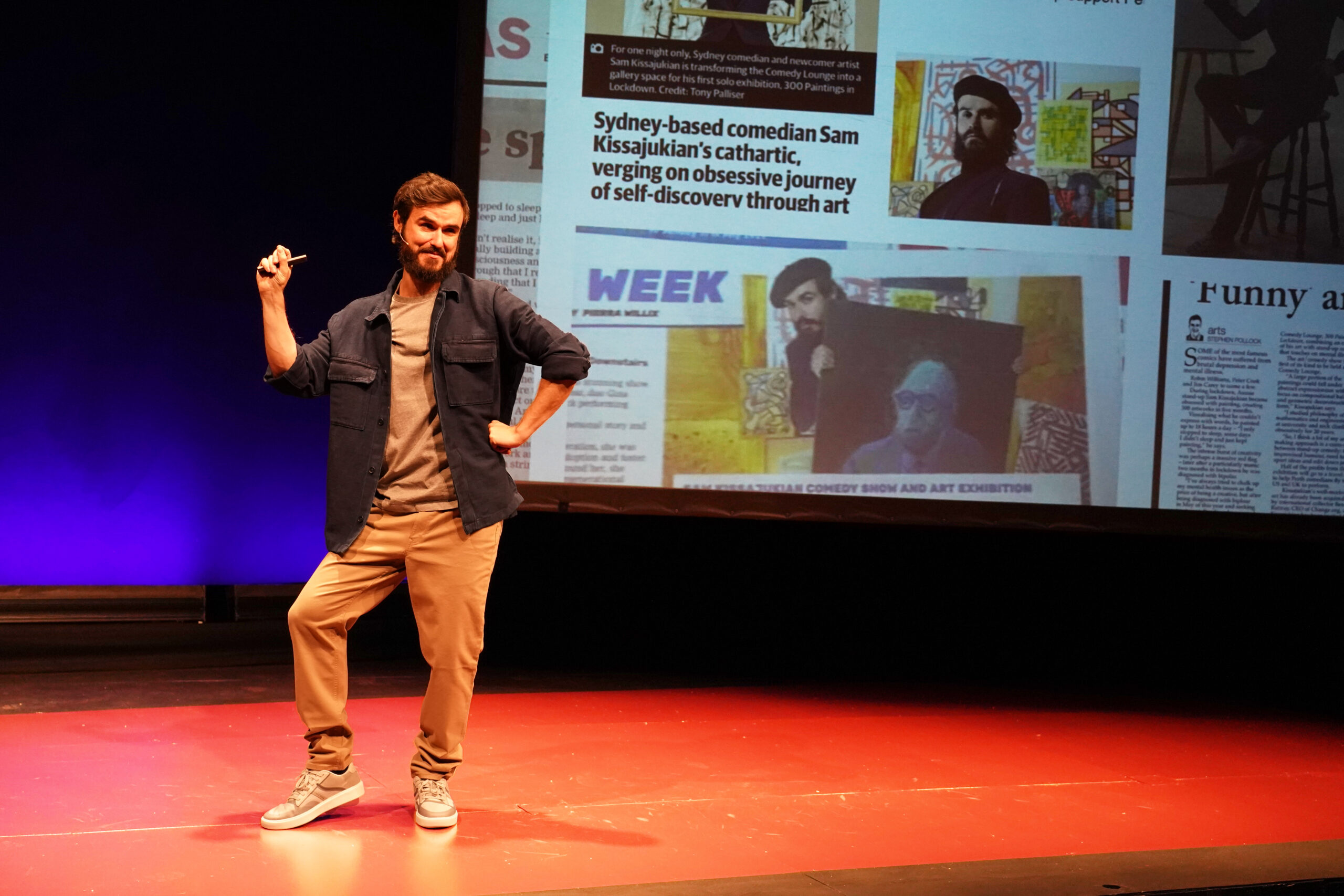 Sydney comedian, Sam Kissajukian, is the writer and star of the off-Broadway’s “Sam Kissajukian: 300 Paintings.” Kissajukian tells Theater Pizzazz how his show draws the lines between art, mental health and creativity. He also describes how the discussion of this subject matter in the theater has evolved since creating this piece.